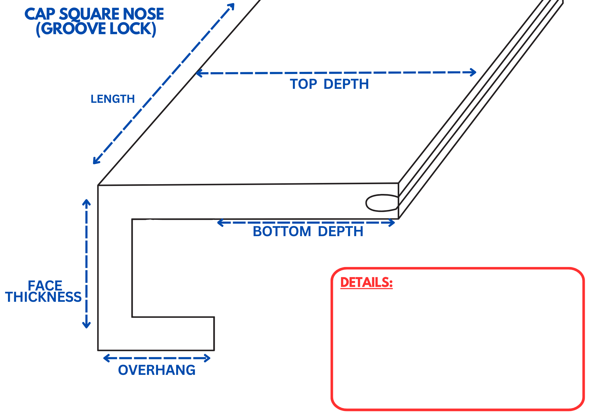 Our custom-fabricated cap square noses are designed to seamlessly overlay existing overhangs, eliminating the need to cut off the original nosing. While this method is not the preferred approach for modern stair aesthetics, we offer it as a practical solution for those looking to preserve their current stair structure. These cap square looking to preserve their current stair structure. These cap square refreshed, updated look without extensive modifications. Perfect for retrofitting older stair designs, they maintain durability and style, offering an affordable alternative to full stair replacement.